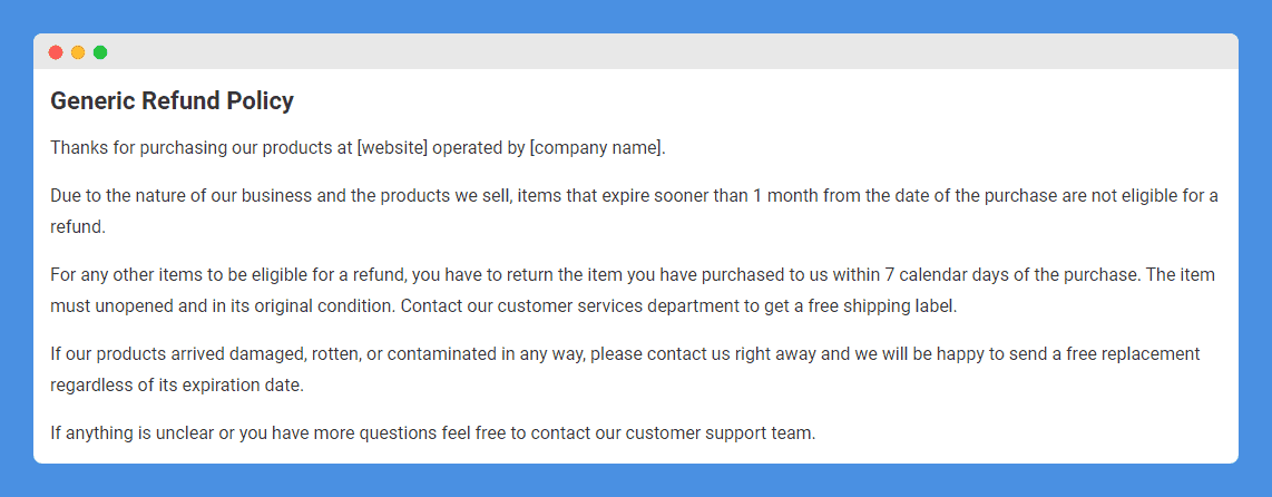 Refund Policy Template for Perishable Products